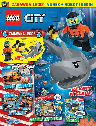 Czasopismo zawiera figurkę LEGO® powiązaną z głównym bohaterem prezentowanym w danym wydaniu (w tym wydaniu - Nurek + Robot i Rekin).
